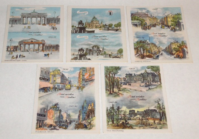 | 12736 | Berlin- Neuroder Kunstanstalten | 5 Berlin Postcards showing artist's rendering of WW2 Damage | Berlin- Neuroder Kunstanstalten | Very good. | Artist's renderings of various Berlin street scenes before and after WW2. | Berlin, Art, WW2, ephemera | $30 |