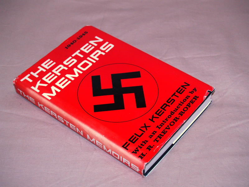 | 16361 | Kersten, Felix | The Kersten Memoirs 1940-45 | The Macmillan Company | Good. Faint shelf wear and soiling on the covers. Owner's name in ink inside. In a lightly worn and chipped dust wrapper. | Introduction by H. R. Trevor-Roper. Felix Kersten was Heinrich Himmler's personal manual therapist. | WW2, Henrich Himmler, Nazi | $40 |