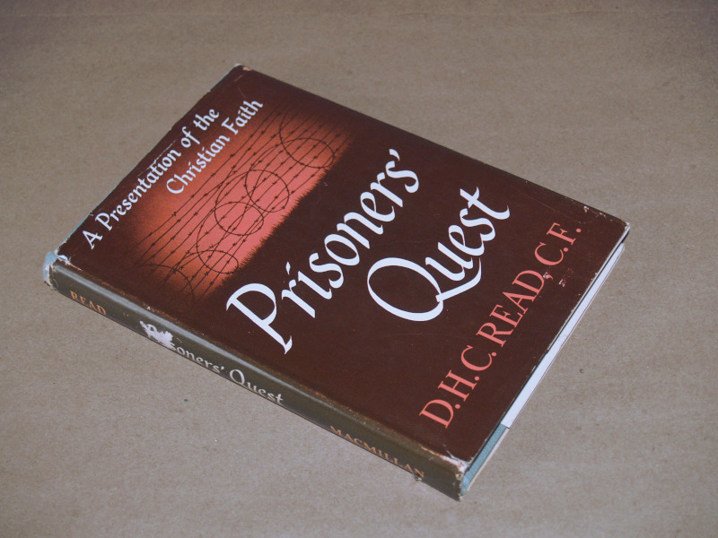 | 16962 | Read, D.H.C., C.F. | Prisoners' Quest A Presentation of the Christian Faith in a Prisoners of War Camp | The Macmillan Company | Very good. Owner's name in ink inside. Fair dust wrapper with a scraped spine and short tears. | Religious talks in WW2 POW Camps. | Religion, WW2, POW | $50 |