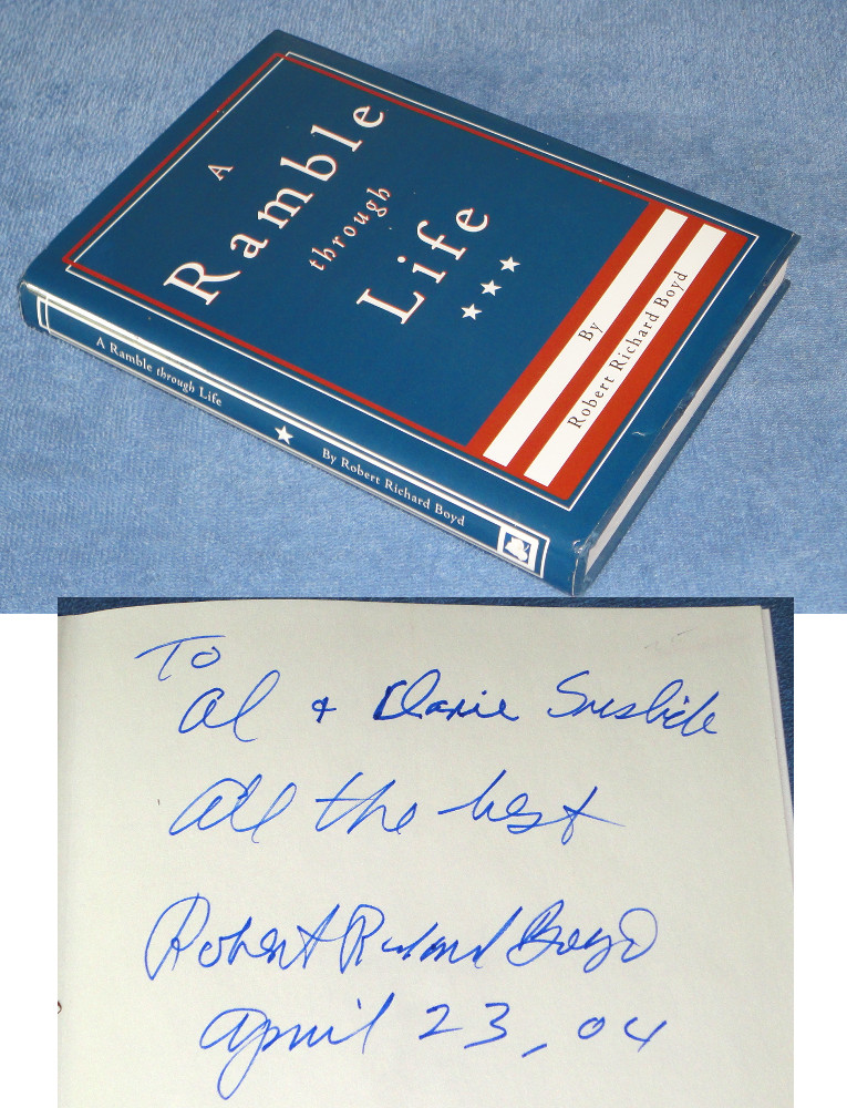 | 17400 | Boyd, Robert Richard | A Ramble Through Life | Ivy House Publishing | Good. Front cover bumped on the bottom. In a good dust wrapper. | Autobiography. Virginia Military Institute. There's a civil war diary included. WW2 and a few b&w photos. | Autobiography, Virginia Military Institute, American Civil War, WW2 | $25 |