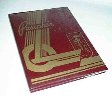 | 10124 | Yearbook Staff | Pashiphor Sacred Heart High-Newport, VT. | Sacred Heart High-Newport, VT | Good with light shelf wear. Several signatures, notes and autographs. In a tight, clear plastic cover. | 1955 hardback yearbook, 7.5 x 10 inches, with b&w photos and ads. A separate 1955 high school picture of students is included. It has creases along it's bottom edge. | High school yearbook, Sacred Heart High, Newport, VT | $20 |