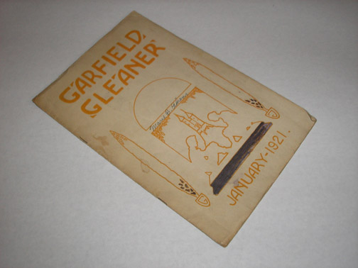 | 10982 | Kinney, Kenneth, editor | Garfield Gleaner January-1921 Vol. VII Number 1 | Garfield School | Fair. The covers are worn, soiled and stained. Part of the cover illustration has been "inked in." Staples are rusty. The previous owner's name is in ink on the front cover. The back two pages have autographs. | 1921 stapled paperback, 7 x 10.5 inches, with 23 pages and b&w photos. Garfield School, Berkeley California, yearbook. | Garfield School, Berkeley, California, yearbook. | $30 |