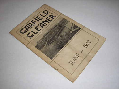 | 10983 | Drury, Lorraine, editor | Garfield Gleaner June-1922 Vol. IX Number 1 | Garfield School | Poor to fair. The covers are worn, soiled, creased, edge-torn and stained. Staples are rusty. The previous owner's name is in ink on the front cover. All the pages have a vertical crease and some rumpling. The back two pages are chipped and torn and have autographs. | 1922 stapled paperback, 7 x 10.5 inches, with 25 pages and b&w photos. Garfield School, Berkeley California, yearbook. | Garfield School, Berkeley, California, yearbook. | $30 |