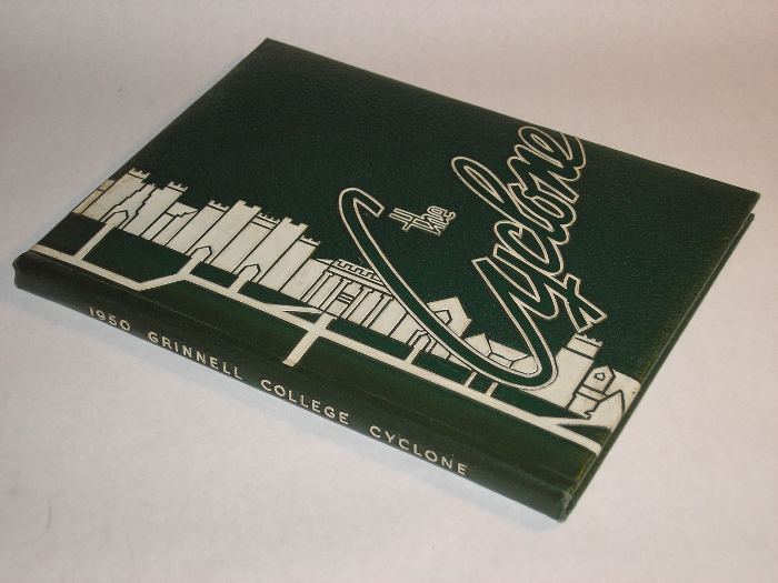 | 12988 | Parker, Lolly and Andy Drummond, Editors | The 1950 Cyclone | Grinnell College | Good. No autographing or marks. No dust wrapper. | 8 x 10.75 inches, with many b&w photos, ads and an index, 1950 yearbook for Grinell College, Grinell, Iowa | College yearbook, Grinell, Iowa | $25 |