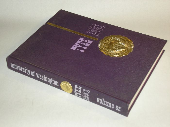 | 12990 | Lenzie, Karen | 1961 Tyee | University of Washington | Good. Covers have some wear and soiling. No dust wrapper. | 9 x 12 inches with many b&w photos. There's an index of names and many ads. Volume 62 | Pacific Northwest, Washington State, University of Washington, College yearbook | $35 |