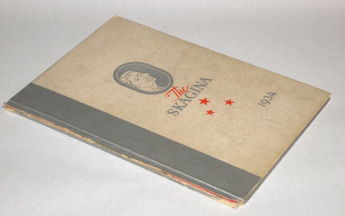 | 13240 | Averill, Betty, editor | The Skagina 1934 | Students Of Mount Vernon High School | Good. Spine has a crack. There are a few autographs on pictures and several in back in the autograph section. | 7.5 x 10.5 inches, high school yearbook, Mt. Vernon, Washington State. There are many b&w photos and illustrations. | High School Yearbook, Mt. Vernon, Washington State, Pacific Northwest | $30 |