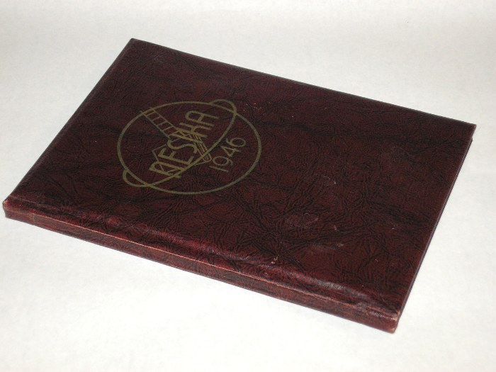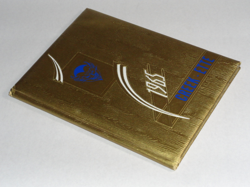 | 13990 | Uintah High School | Uintahn 1934 | Uintah High School | Good. Light shelf wear on the covers. Extensive autographing inside. | 8 x 11 inches with many b&w photos and ads. The previous owner's discharge paper from the Civilian Conservation Corps is paperclipped inside. | Uintah High School, Vernal, Utah, yearbook | $35 |