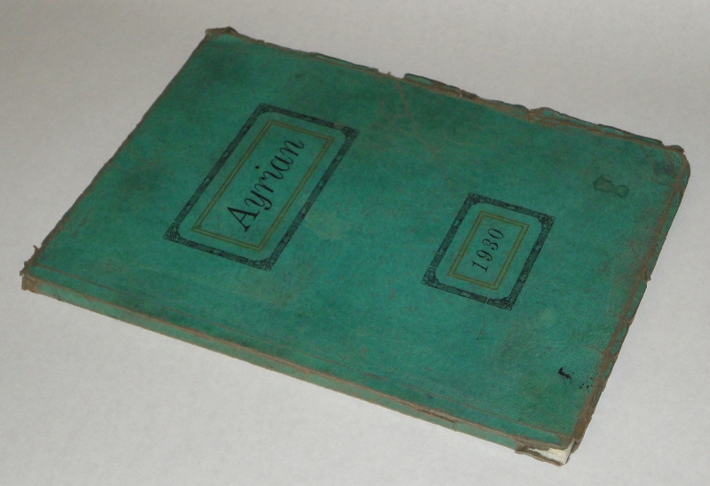 | 13505 | Stone, Robert | The 1930 Ayrian | Mount Ayr High School | Fair to good. The binding is fragile, torn and chipped especially on the edges. There is some soiling inside. The contents are good. | 8 x 10.5 Mount Ayr, Iowa yearbook with many b&w photos and a lot of advertisements. | Mount Ayr, Iowa, high school yearbook | $30 |