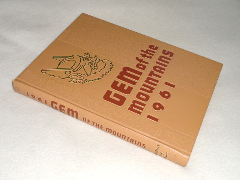 | 14596 | Tuson, Gay and Cathy Brewer | Gem of the Mountains 1961 | The University of Idaho | Very good. No dust wrapper. | 9 x 12 inches with many b&w photos and an index. The University of Idaho yearbook for 1961. | Idaho, The University of Idaho, yearbook | $25 |