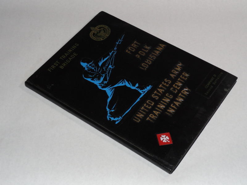 | 14778 | Staff | Fort Polk Louisiana United States Army Training Center Infantry Company D Second Battalion | United States Army | Good. Some staining on the front cover, small white specks on the back. No dust wrapper. | 9 x 12 inch yearbook from 1965 boot camp, Company D Second Battalion. October to December, 1965 | United States Army, yearbook, Fort Polk, Louisiana | $20 |