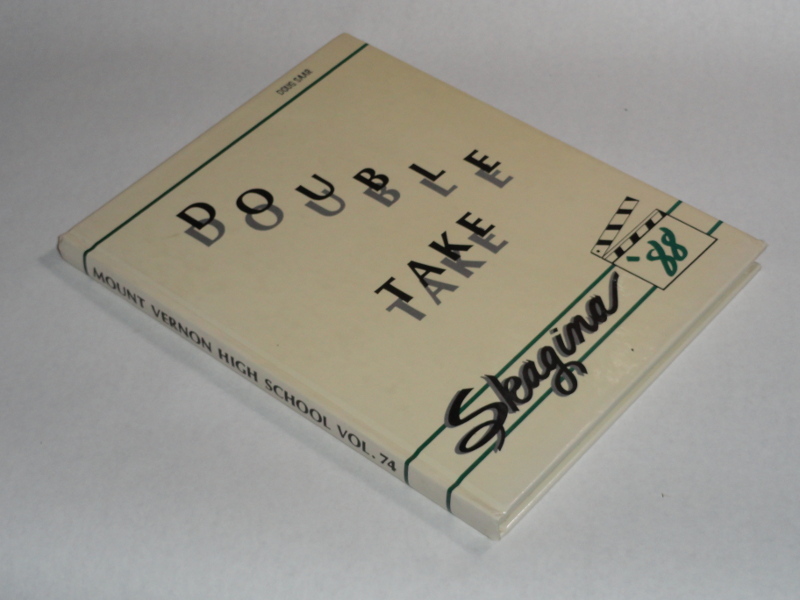 | 15185 | Staff | Double Take Skagina 1988 Volume LXXIV | | Good. Owner's small rubber name stamp on the front cover. One corner worn. No autographs. | 8.5 x 11 inches with many pages of b&w and color photos, a yearbook for Mt. Vernon, Washington High school | Yearbook, Mt. Vernon, Washington, high school | $25 |