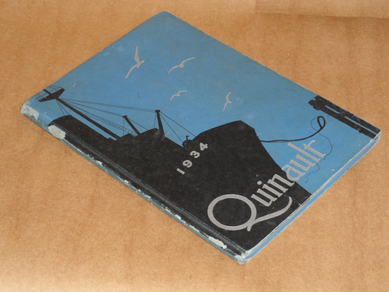 | 16006 | Staff | The Quinault | Associated Students Weatherwax High School | Good. Scraping on the spine, some shelf wear and soiling. No autographs. | 7.5 x 10.5 inches, high school year book for Weatherwax High School, Aberdeen, Washington. There are many b&w photos. Several ads in the back. | High School yearbook, Aberdeen, Washington | $40 |