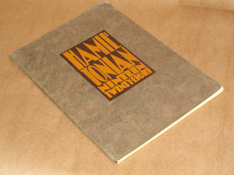 | 16007 | Straughn, Nona, editor | Hamimltonian Ninteen Twenty-Eight | The Students Of Alexander Hamilton Junior High Long Beach California | Good. Light shelf wear. Top corner tip worn. 3 pages of autographs in the back. Name in ink on the title page. | 8 x 10.5 inches, a high school yearbook for Alexander Hamilton Junior High School in Long Beach, California for 1928. Many b&w photos. Three pages of autographs in back. | High School Yearbook, Alexander Hamilton Junior High, Long Beach, California | $50 |