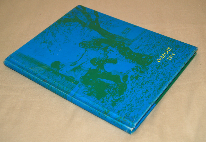 | 16207 | Staff | Omache 1974 | Omache High School | Good. Covers and spine worn. Cloth worn through on one corner. Some autographing. | 8.5 x 11 inch yearbook for Omak High School, Omak, Washington, with b&w photos and ads. | High School Yearbook, Omak, Washington | $25 |
