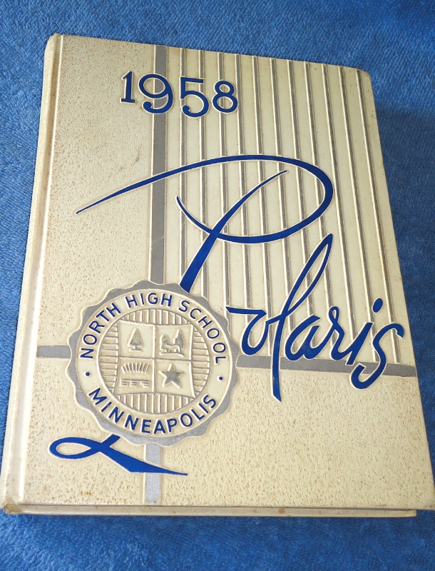 | 17308 | Olsen, Diane, editor | 1958 Polaris North High School Minneapolis, Minnesota | Niorth High School Minneapolis | Good. Light shelf wear and soiling on the covers. Owner's name inside. Good. Light shelf wear on the covers. Some autographing. | 1958 Polaris North High School Minneapolis, Minnesota Yearbook, 7.5 x 10.75 inches with many b&w photos. There's a senior activity index and a general index. | High School Yearbook, North High School, Minneapolis, Minnesota | $35 |