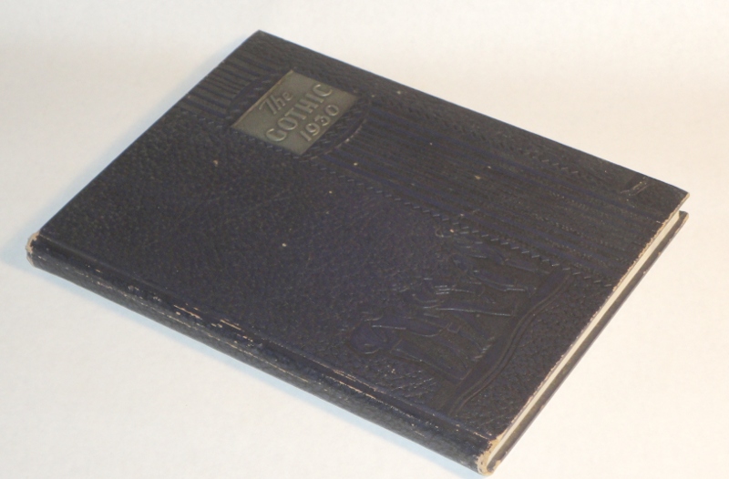 | 8983 | Sembower, John F. Editor | The 1930 Gothic | Bloomington High School Bloomington, Indiana 1930 8 X 10 inches with 172 pages, photos, ads, etc. | Fair to good. Top and bottom of the spine are worn, small creases/cracks in the spine, cover edges worn. Minor autographing and writing inside. | Bloomington High School, Bloomington, Indiana 1930, yearbook | Bloomington High School, Bloomington, Indiana 1930, yearbook | $25 |